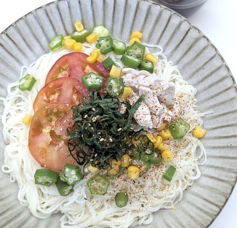 夏野菜のピリ辛サラダ素麺